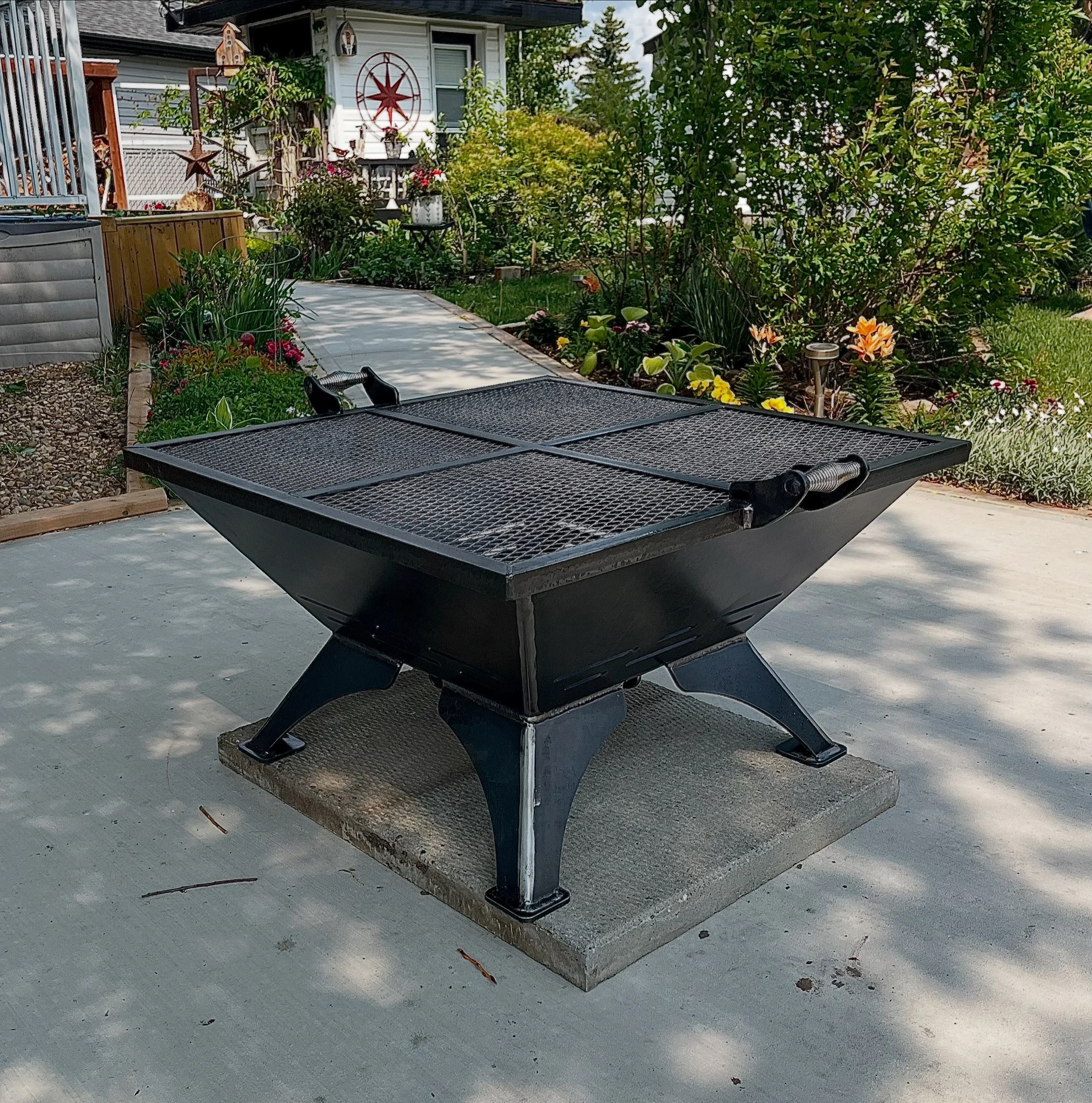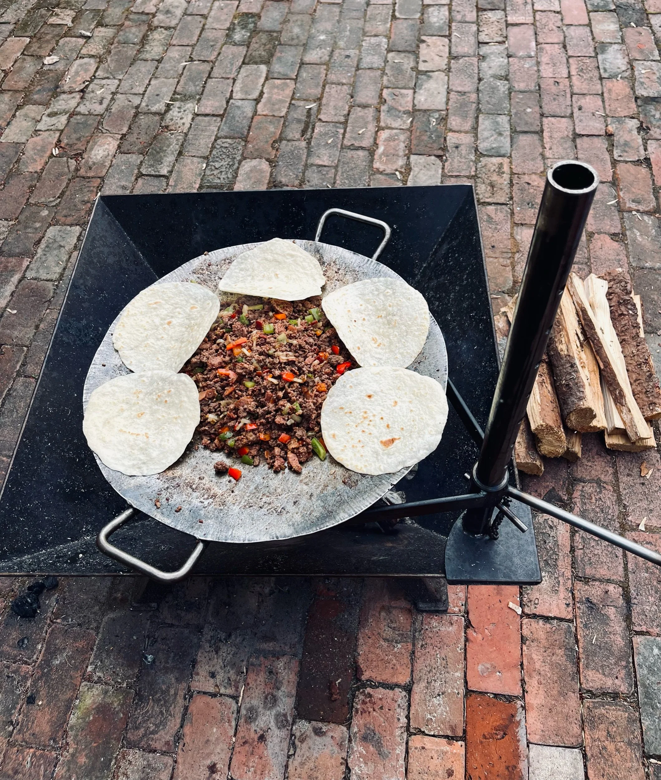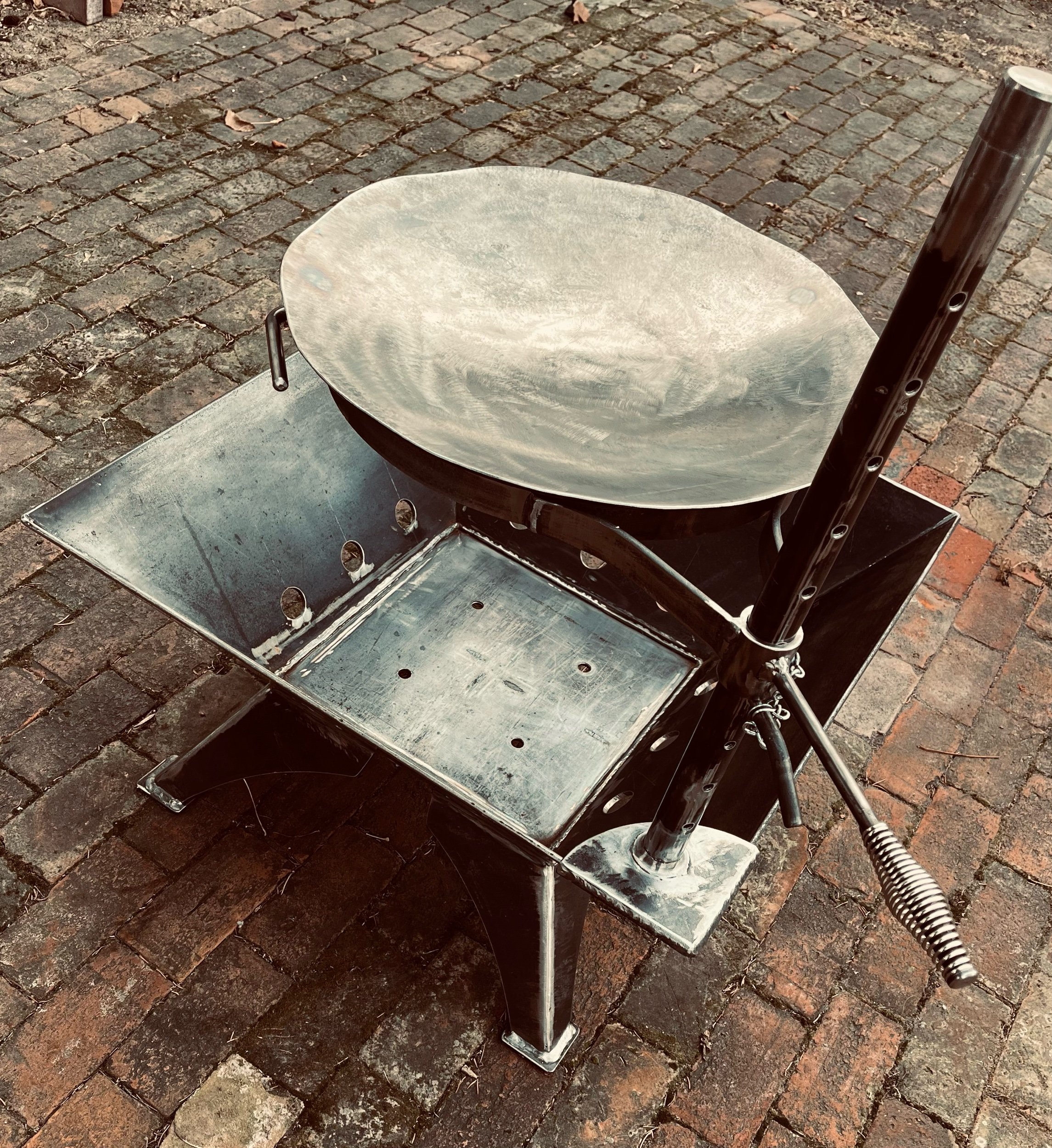 Cooking Grill $275.00 Cooking Pole $85.00 Spark Screen 30" Square $300.00 Forged BBQ Spatula $85.00 Forged BBQ Tongs $65.00 Forged Steak Turner $65.00 9x15 Griddle & Roaster $265.00 9" Carbon Steel Skillet $185.00 11" Carbon Steel Skillet $235.00 12" Carbon Steel Crepe & Omelette Pan $235.00 30" Square Fire Pit $750.00